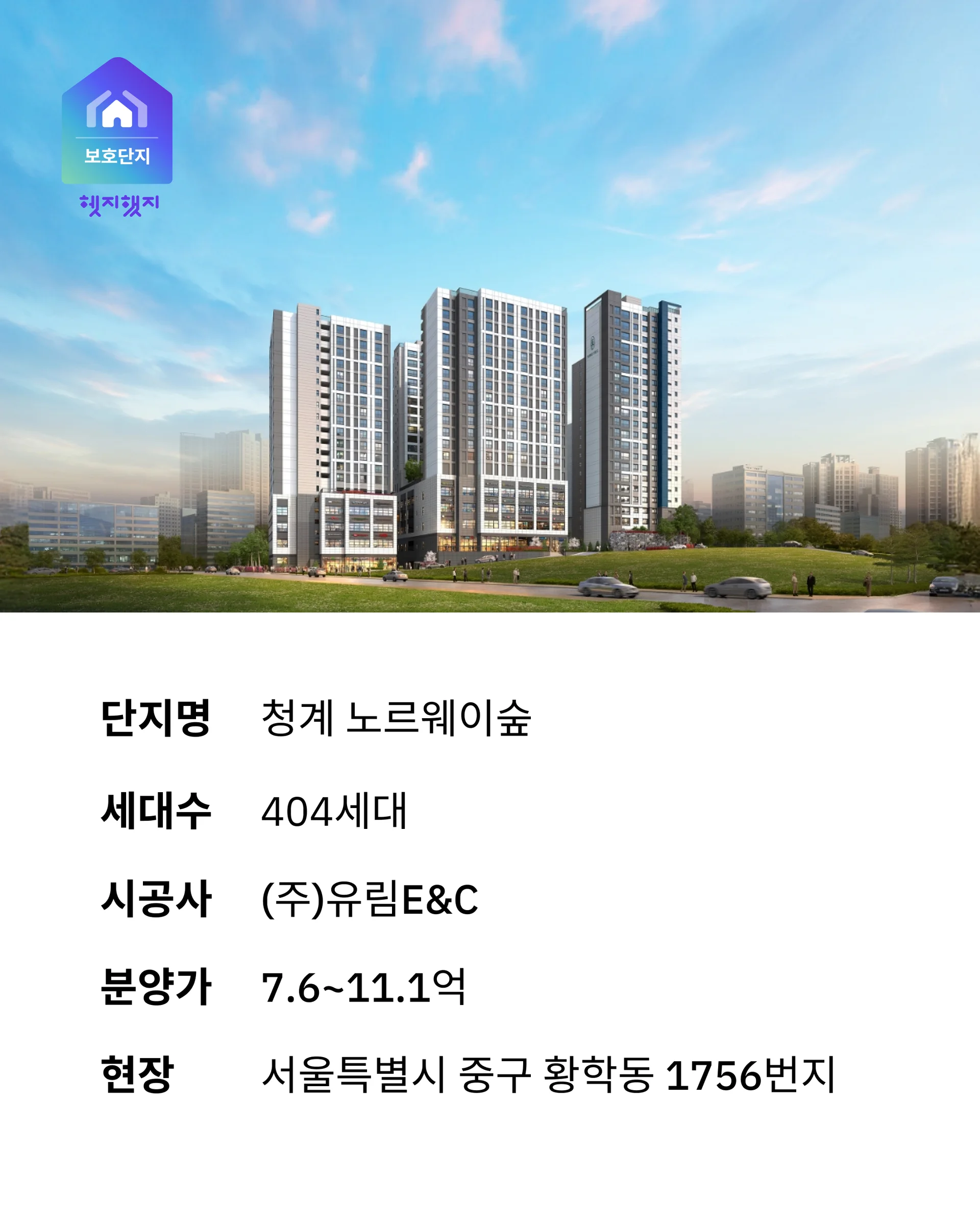 오늘 소개해 드릴 ‘청계 노르웨이숲’은 언제나 높은 주택 수요를 자랑하는 서울 도심에 있는 신축아파트로 이번에 헷지했지 보호단지에 선정되었습니다.