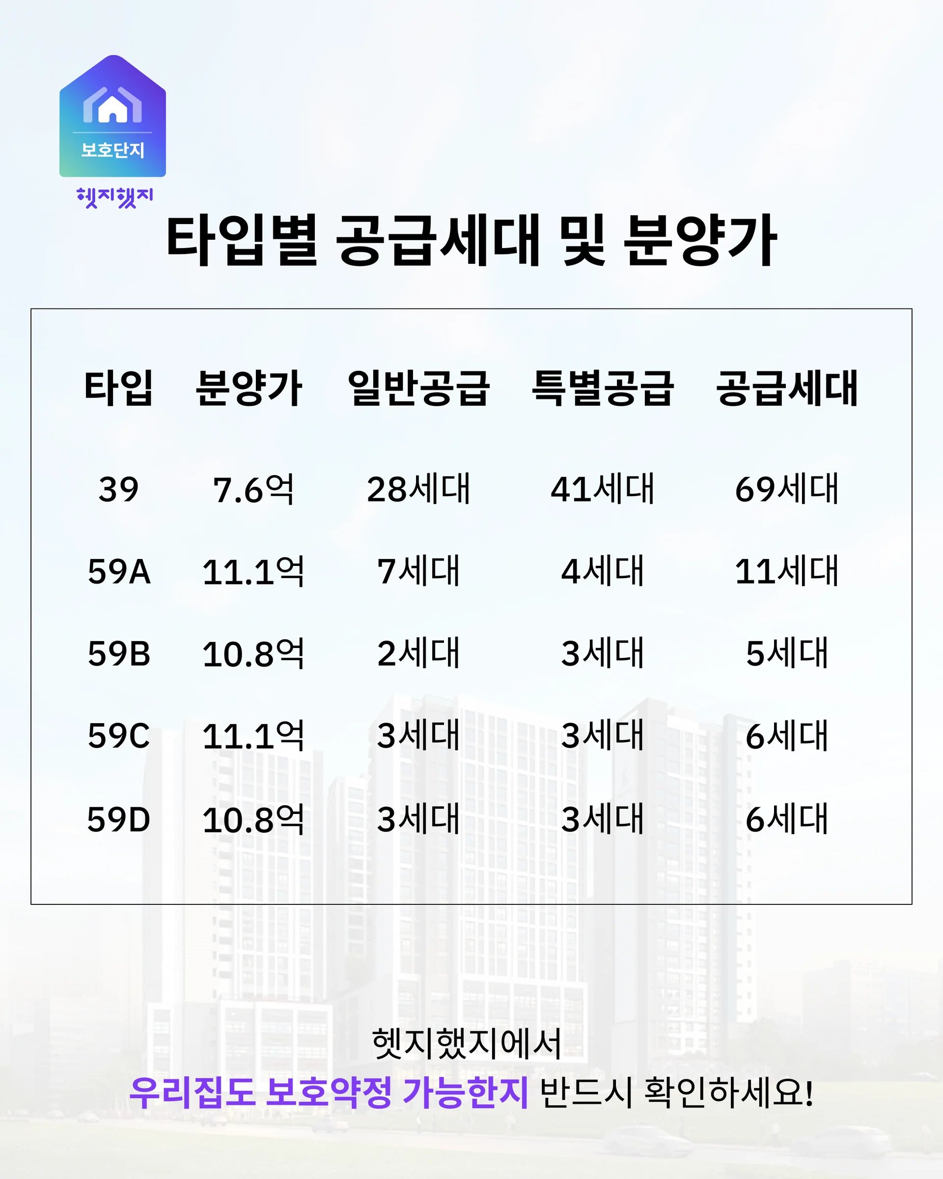전매 가능한 물건: 일반 분양 외에도 조합원 전매 가능한 세대가 약 40여 세대 남아있어, 조건에 맞는 수요자에게 좋은 기회가 될 것입니다.