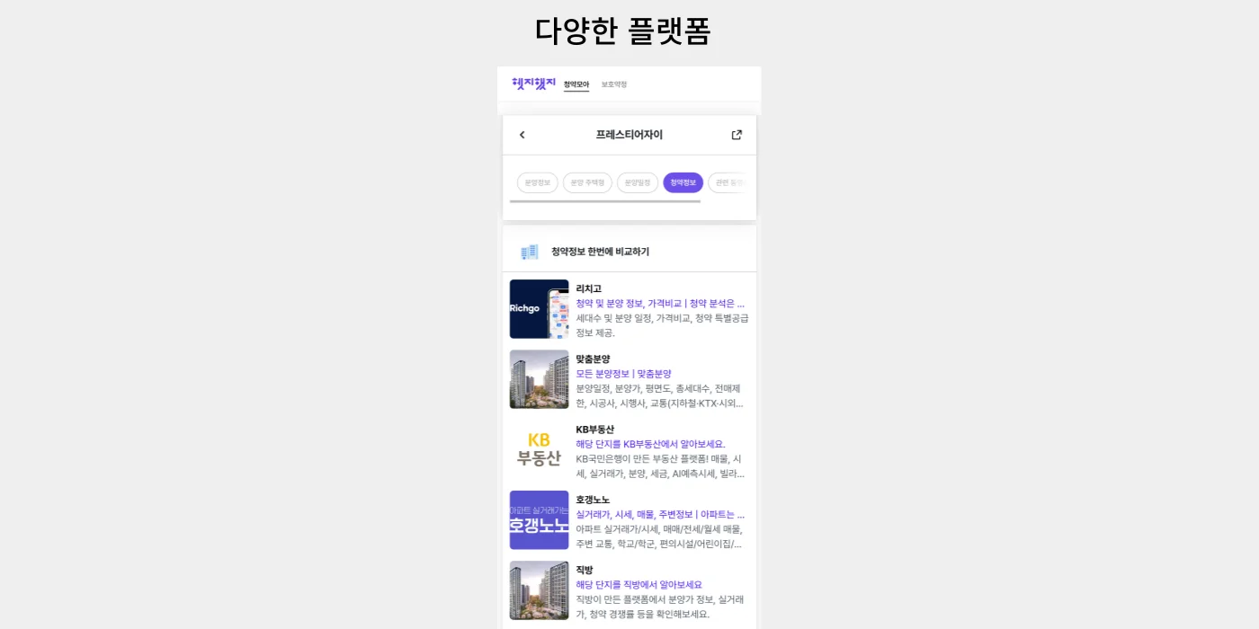 다양한 플랫폼에 흩어져 있던 분양 정보와 시세를 한 곳에서 한눈에 볼 수 있도록