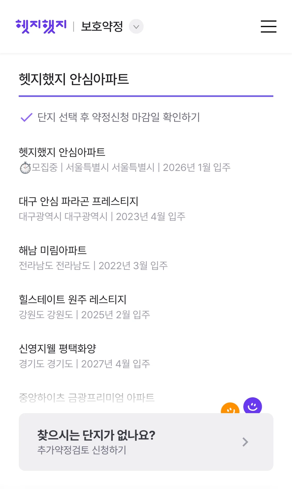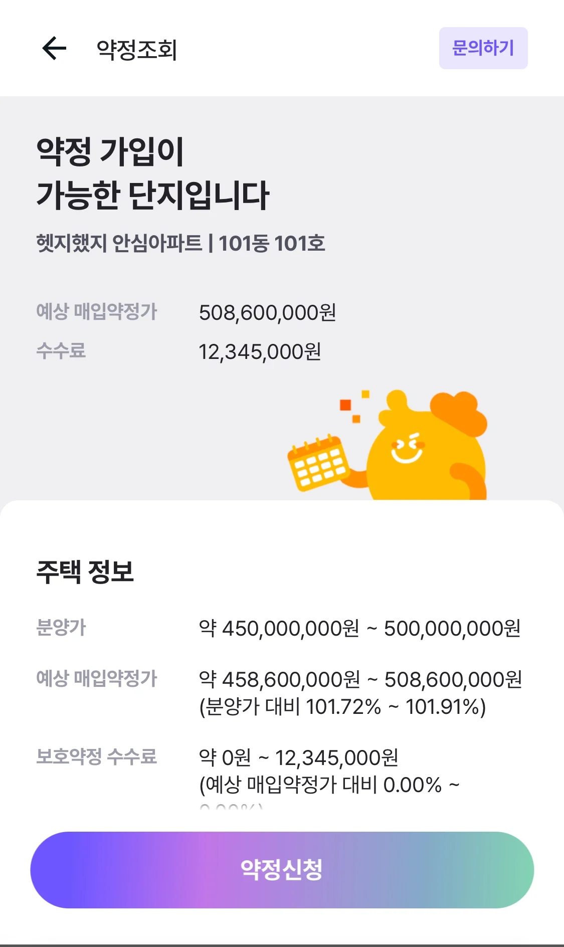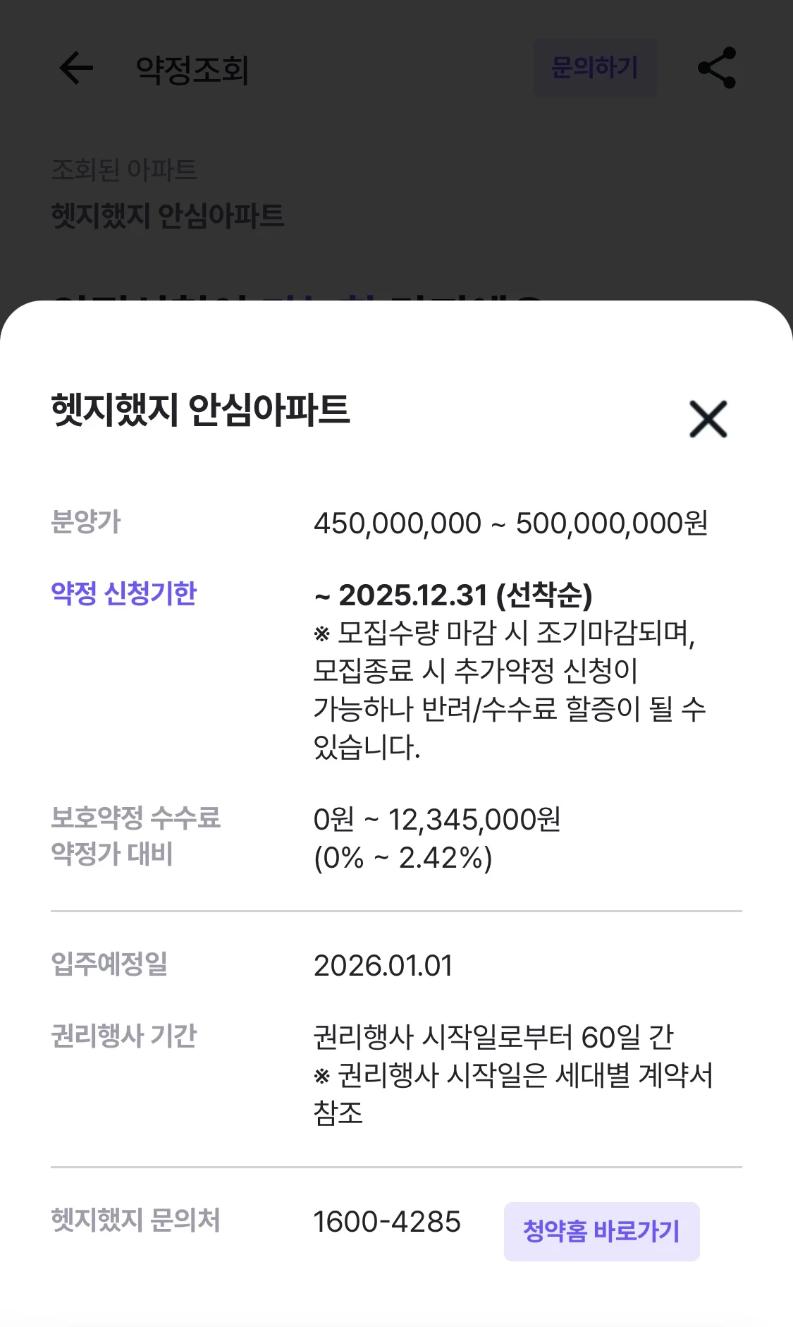 해당 아파트의 보호약정 신청기한, 분양가등 정보를 확인해주세요.