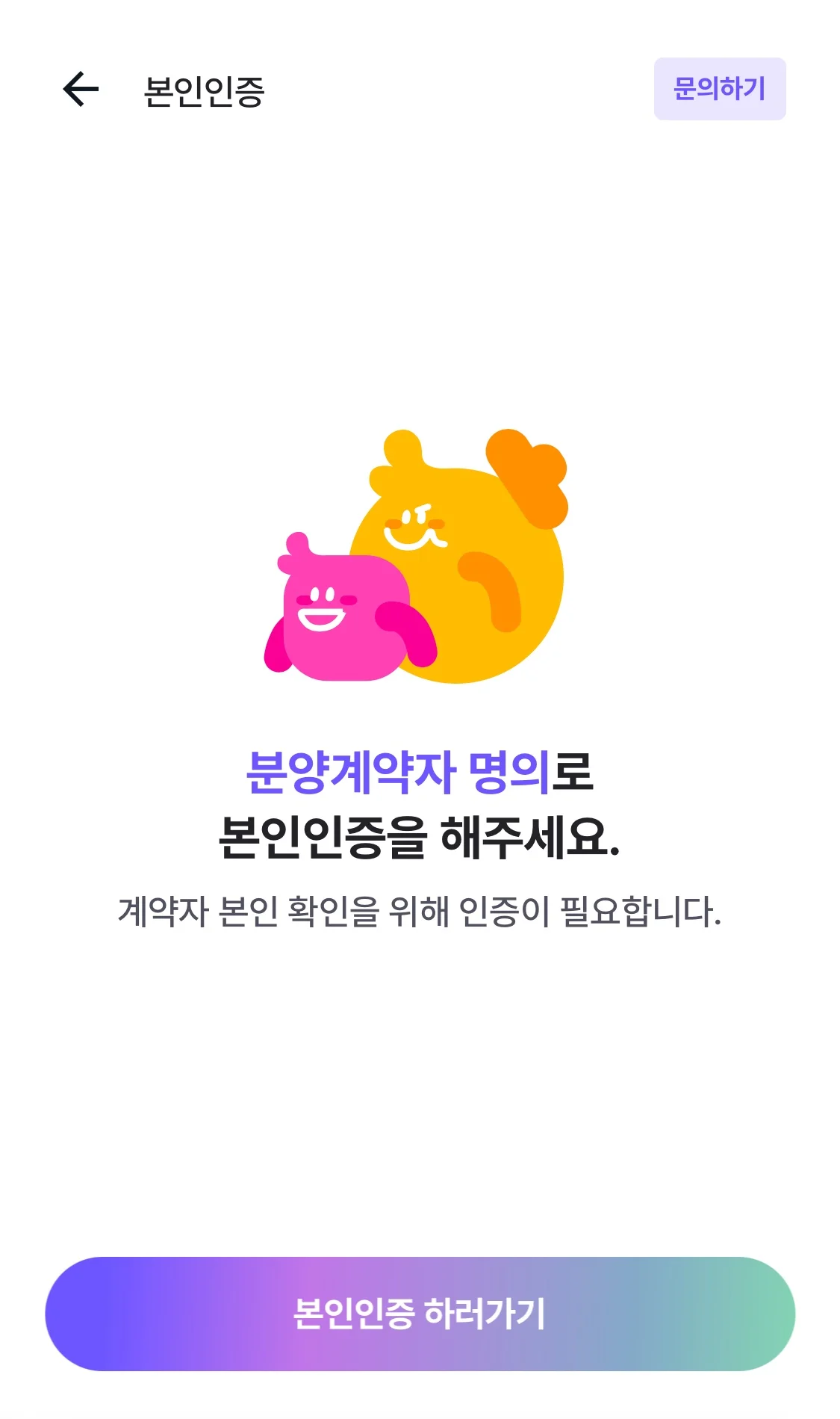 로그인 완료 후, ‘분양계약자’ 본인 인증을 합니다.
