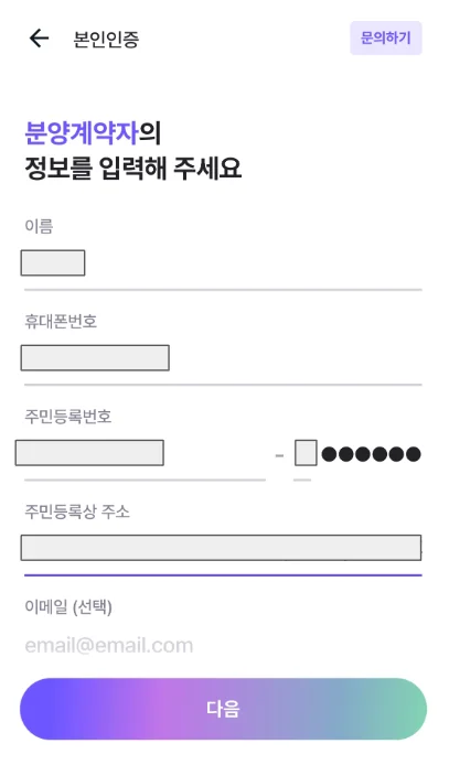 분양 계약자 본인 정보를 각 항목별 맞게 기입합니다.