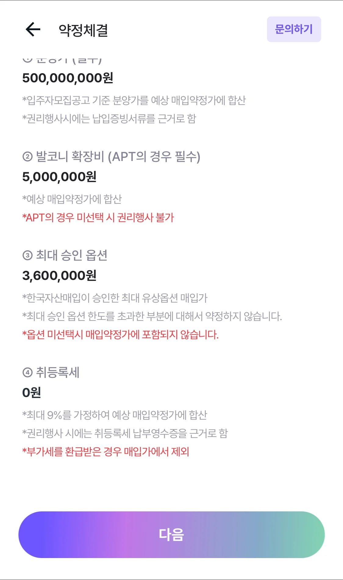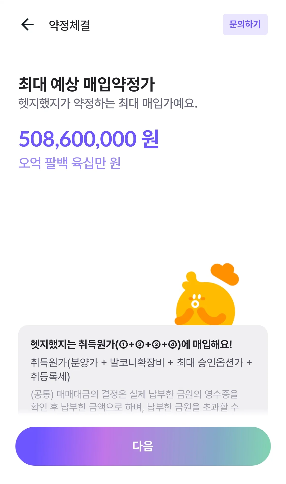 보장해 드리며, 예상매입약정가가 어떻게 결정이 되었는 지 ‘다음’을 클릭하여