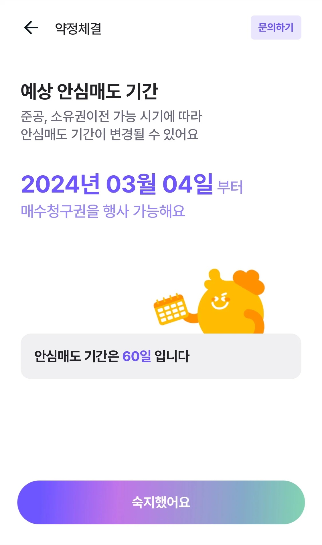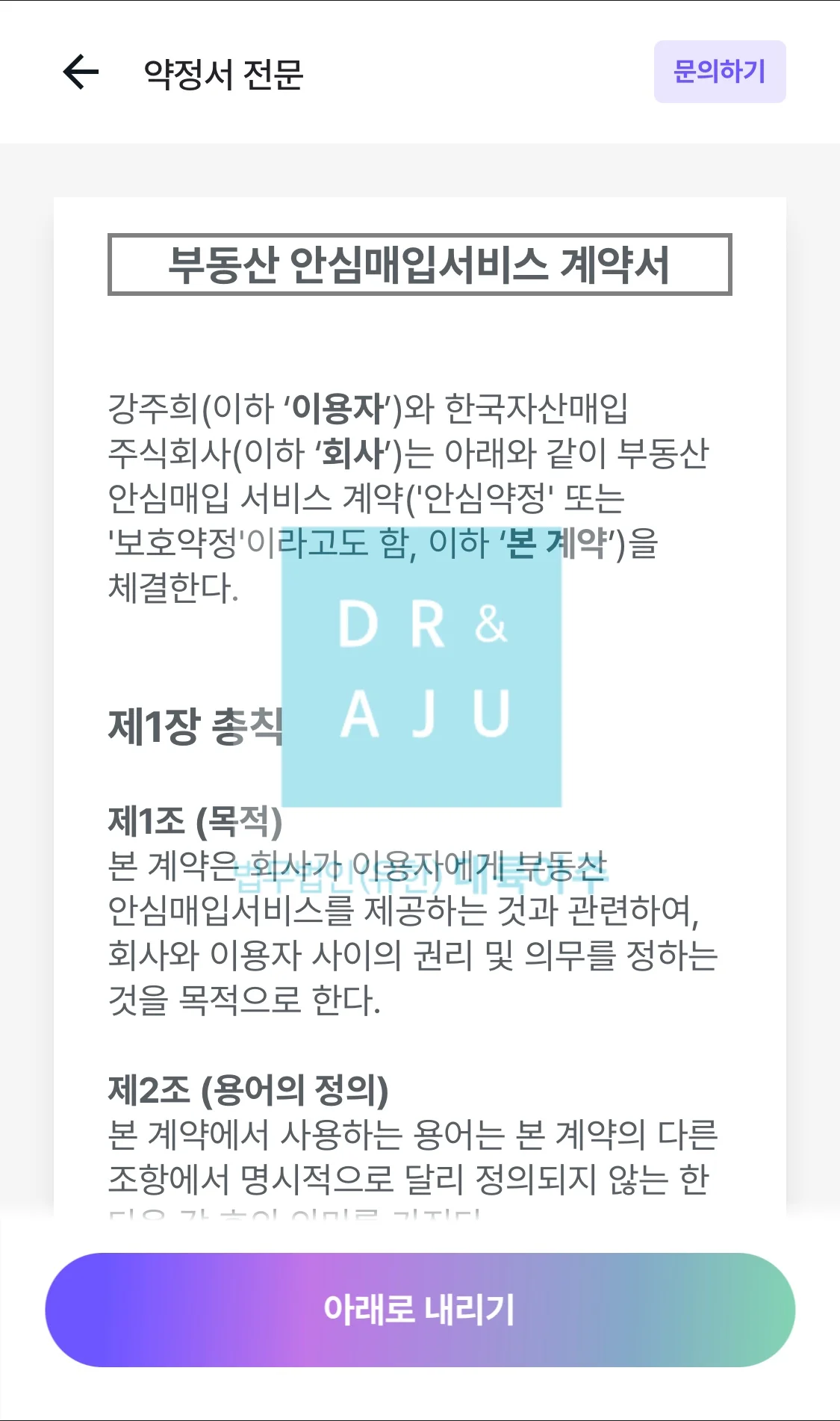 안심매도 기간을 확인한 후에, 약정서(계약서) 전문으로 넘어갑니다.