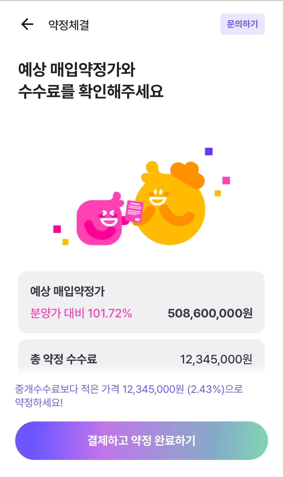 총 약정 수수료를 확인한 다음에 결제 버튼을 누른 후 약정을 완료합니다.