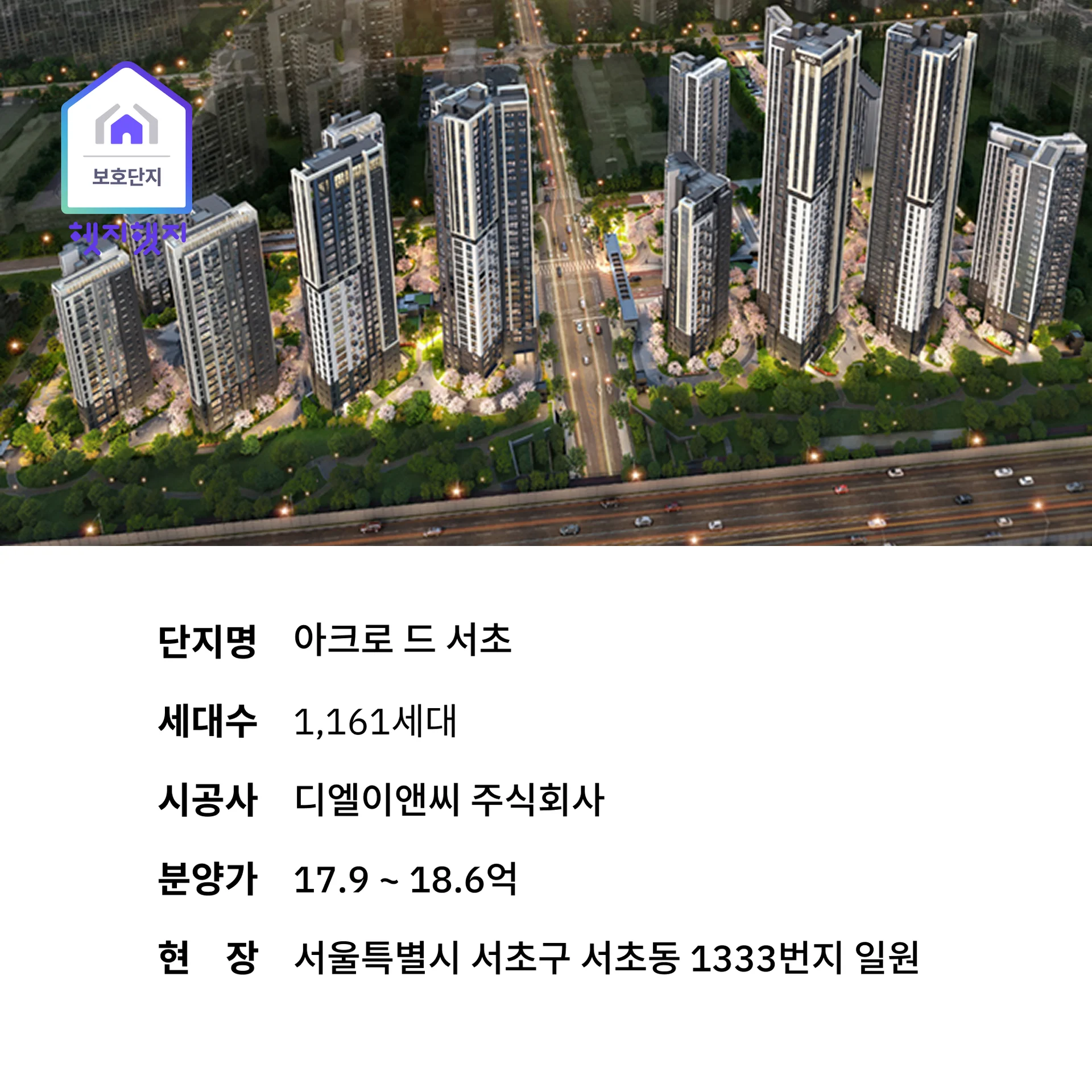 들어서는 '아크로 드 서초'가 헷지했지 보호단지에 선정되었다는 소식과 함께,