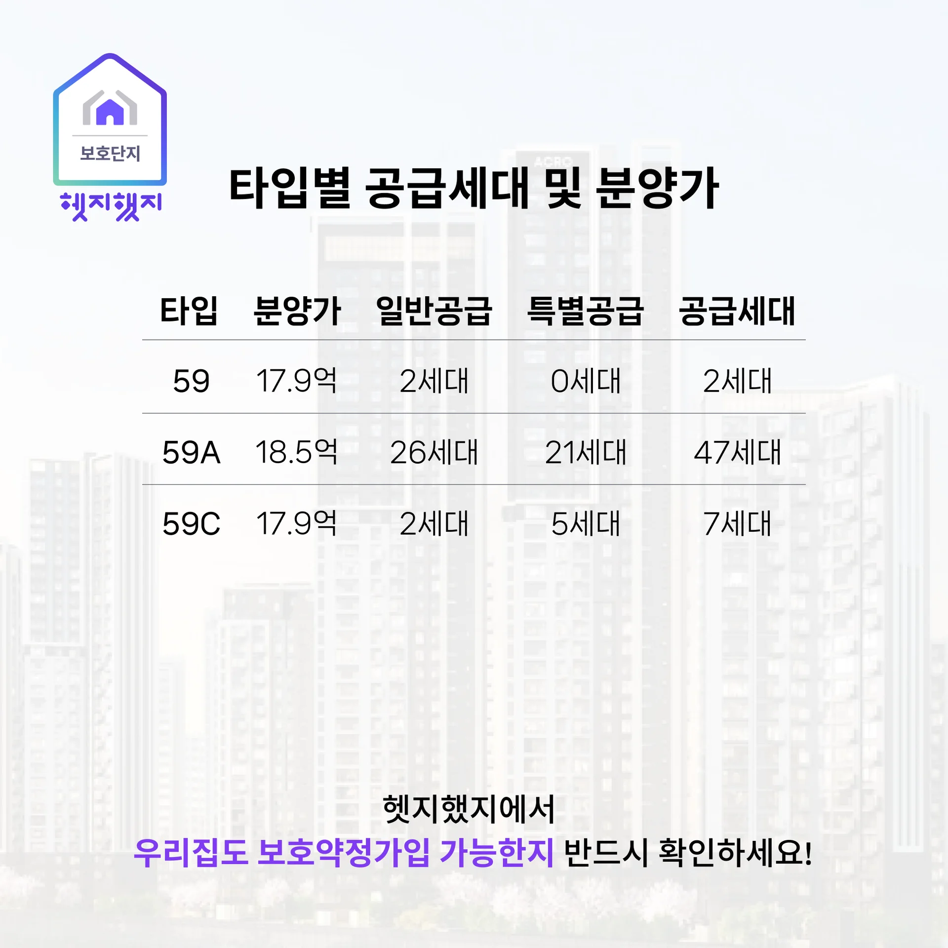 전용 59㎡ 3개 타입(59.37 / 59.37A / 59.21C)만 공급되는