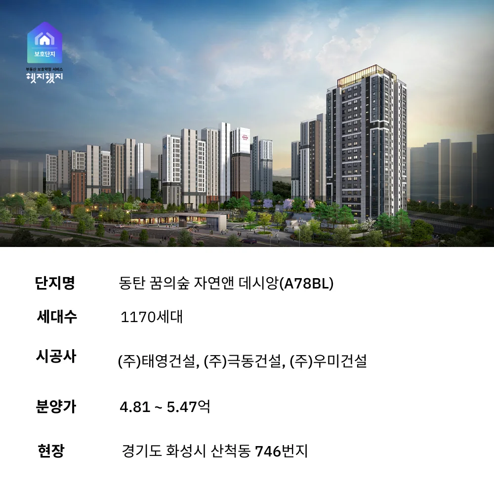 오늘은 동탄 신도시의 인기 단지 ‘동탄 꿈의숲 자연앤 데시앙(A78BL)’이