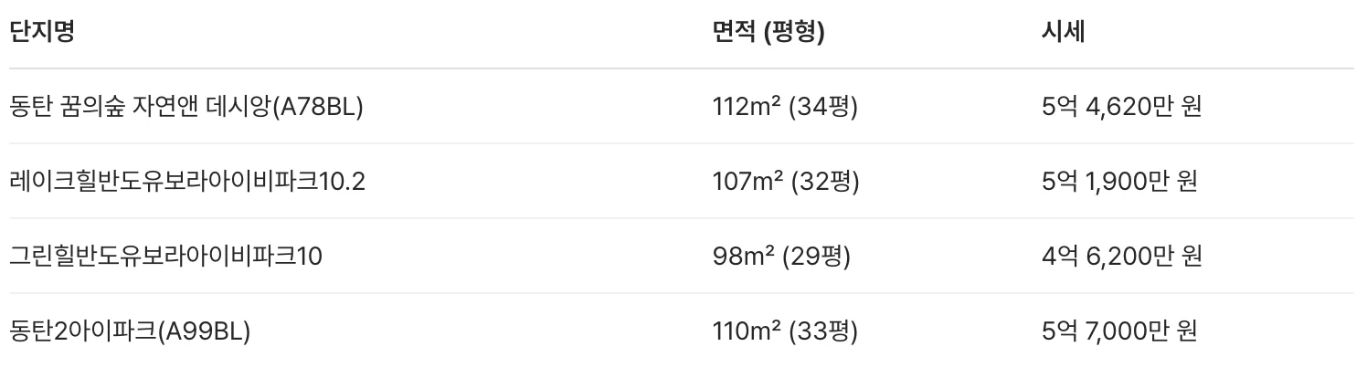 동탄 꿈의숲 자연앤 데시앙의 분양가와 주변 단지의 시세를 비교해 보세요.