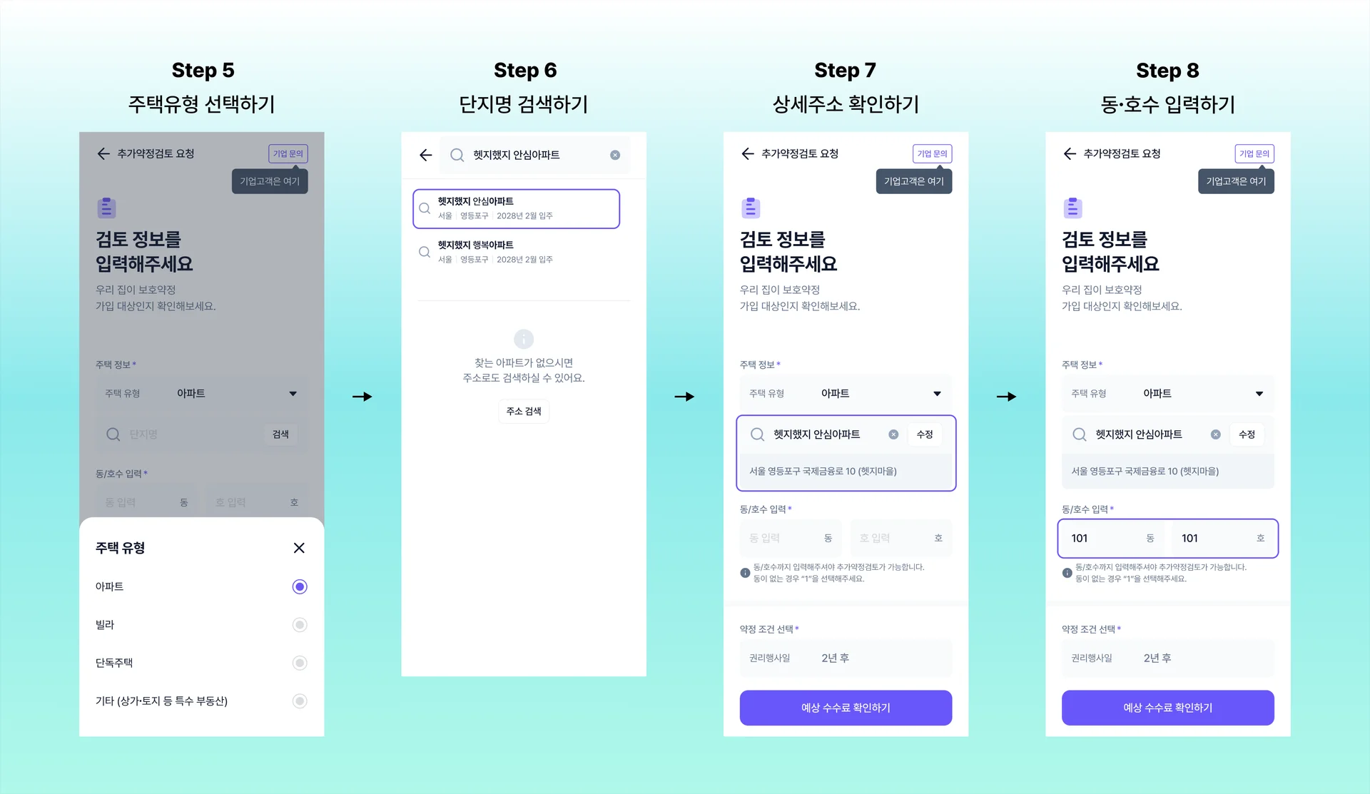 선택한 단지의 주소 정보를 확인합니다. 주소가 맞는지 한 번 더 확인해 주세요.