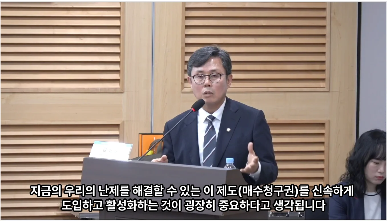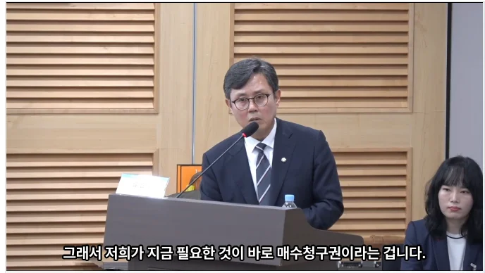 안도걸 의원의 환영사를 먼저 소개하겠습니다. AI 기반 ‘매수청구권’이 무엇이며,