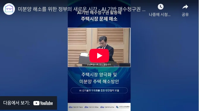 AI 기반 매수청구권 분양 방안은 가격 위험을 헷지해 수요를 회복해 미분양을 해소하고권리 행사분은 임대주택으로 전환돼 단기간 공급을 보강할 수 있는 예산 대비 효과가 큰 대안이라고 언급했습니다.