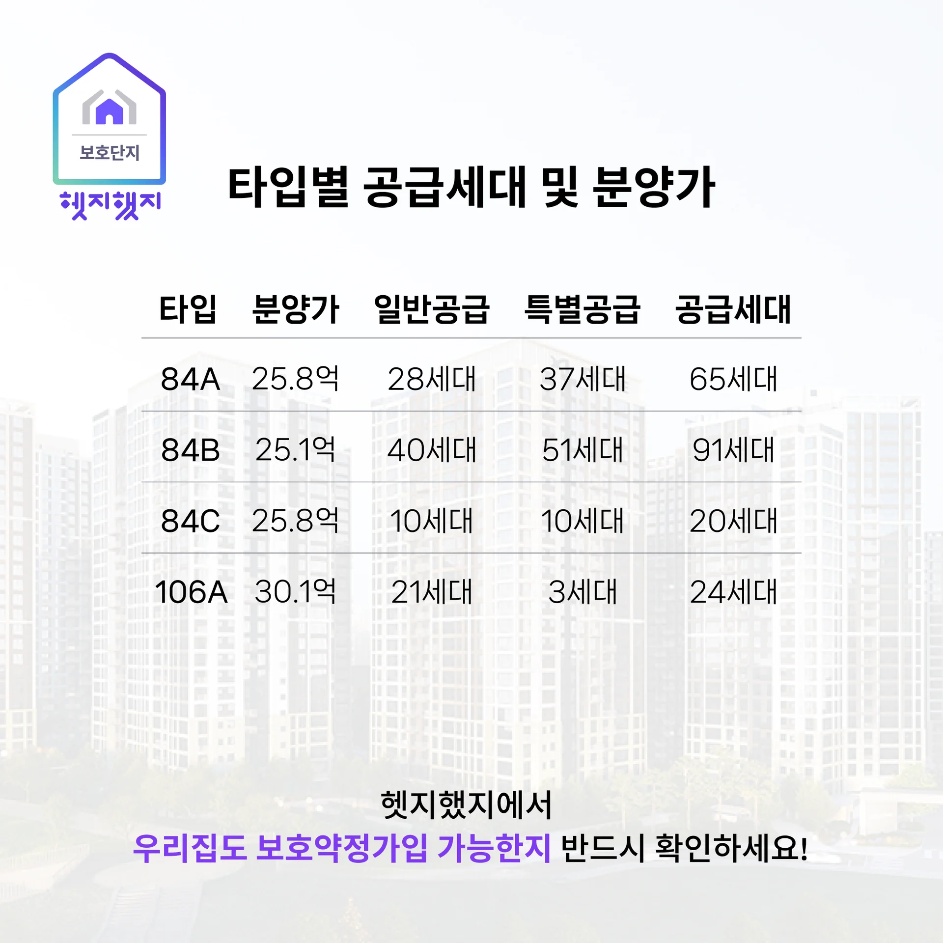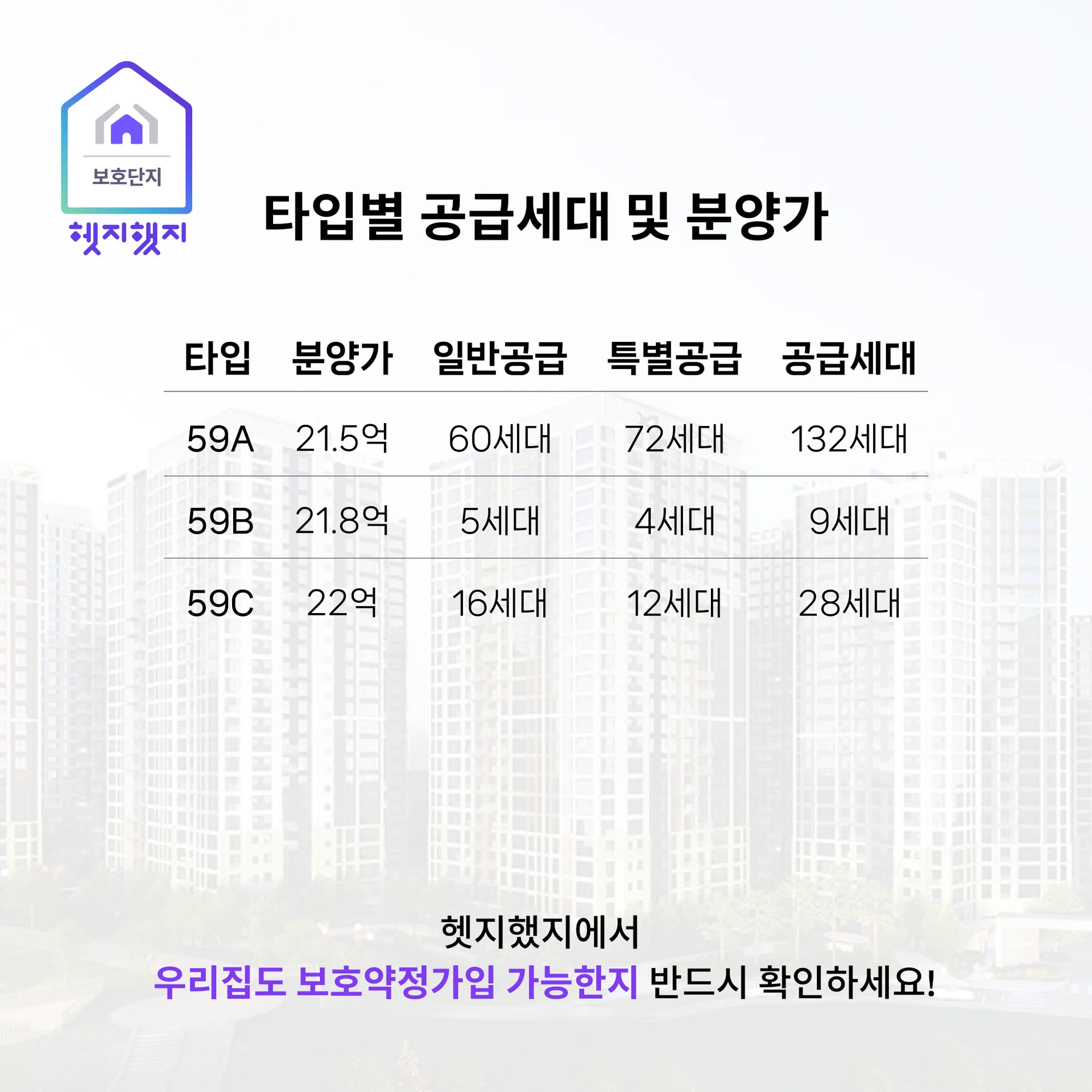 ※ 분양가상한제 미적용 민간택지 공급, 대지지분 6㎡ 초과 시 토지거래허가구역 적용.