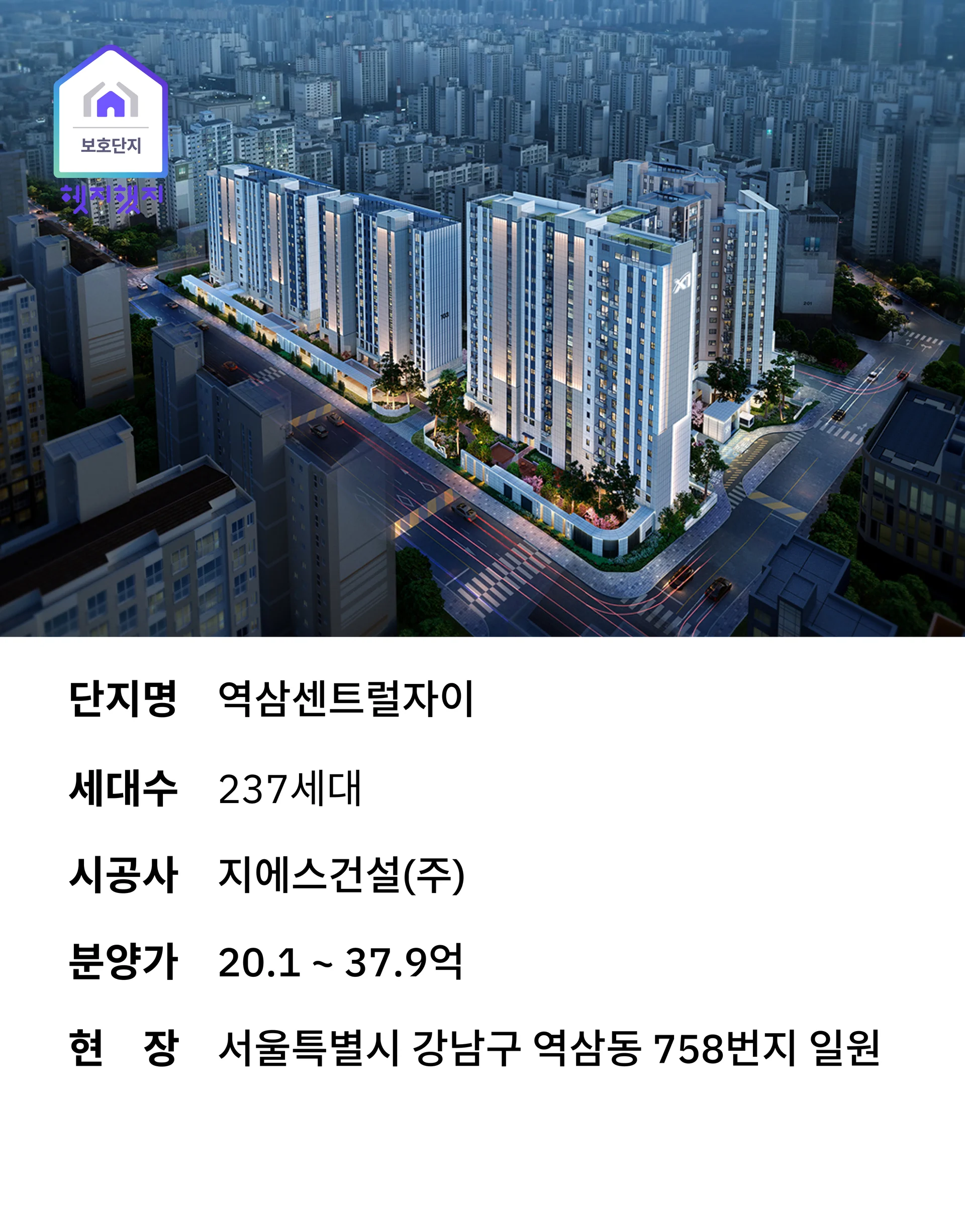 그래서 헷지했지가 '역삼 센트럴 자이'를 보호단지로 선정했습니다.